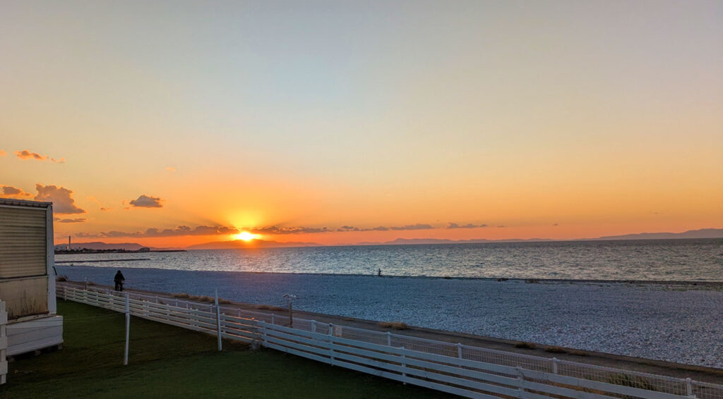 夕日の暮れ加減を確認しつつ。。。