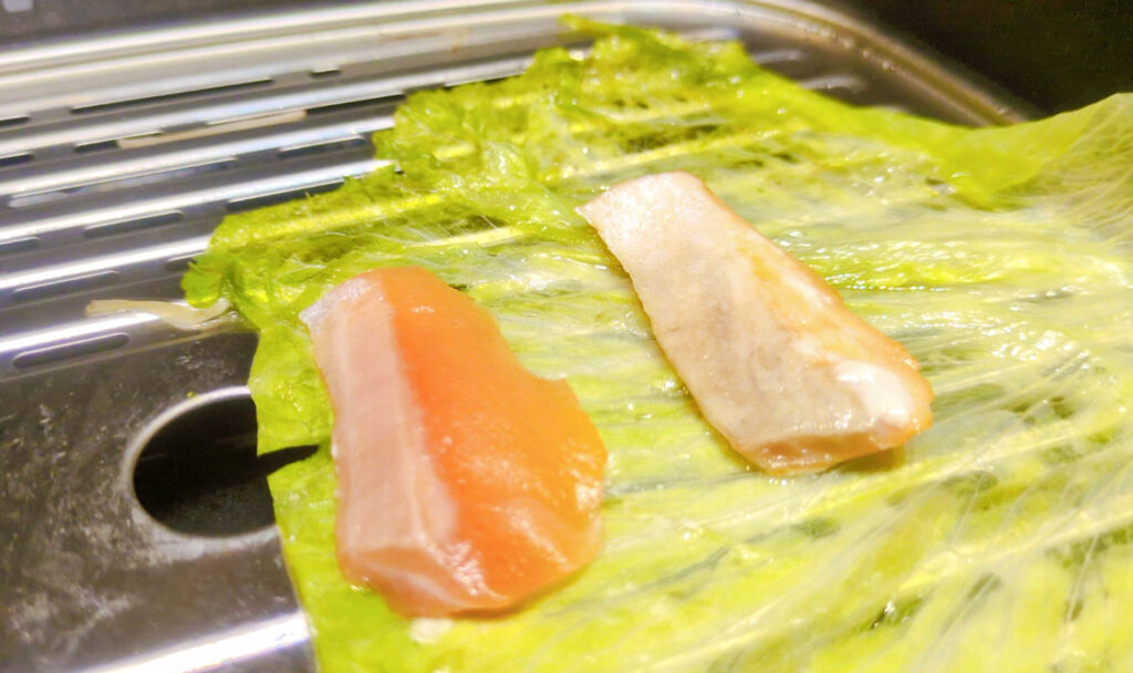 サーモンに火を通して