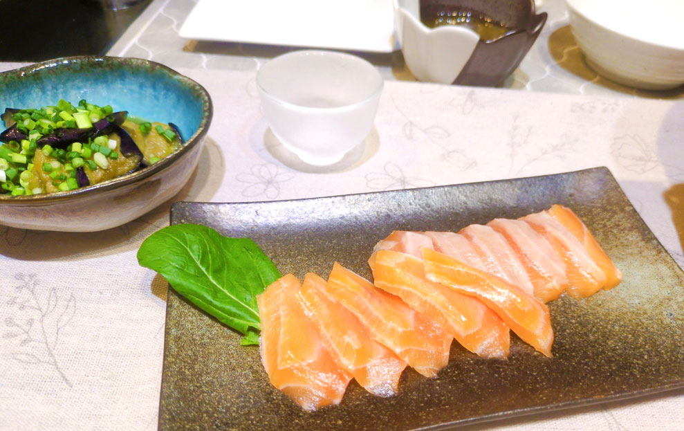 余ったお刺身のサーモンを乗せて