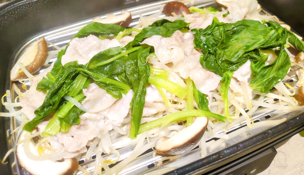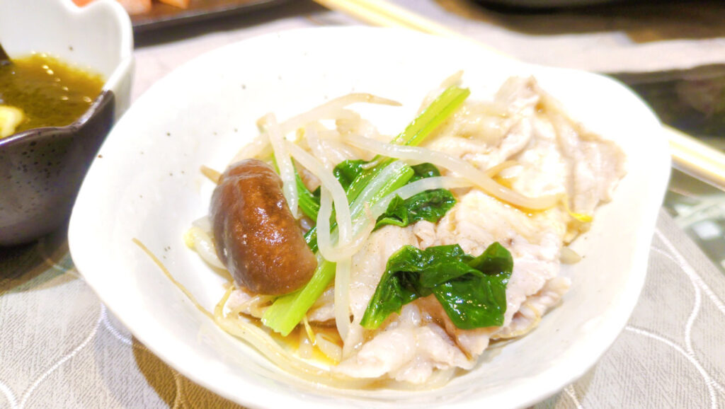 『豚バラ肉と野菜の蒸ししゃぶ?』