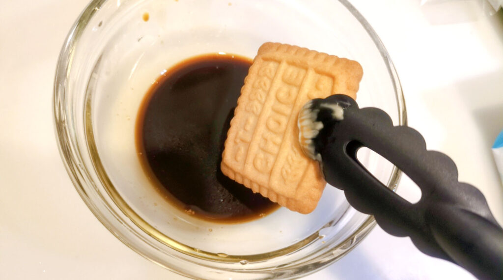 森永のCHOICEクッキーを浸して、